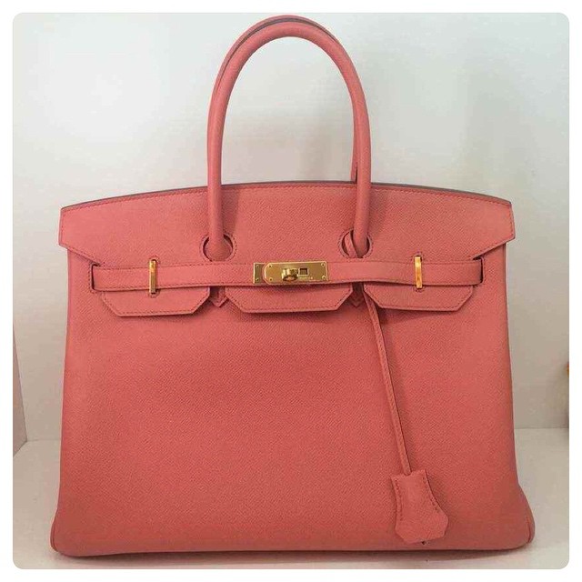 Preloved Hermes Birkin 35 Flamingo pink epsom gold hardware stamp QFull set no receipt